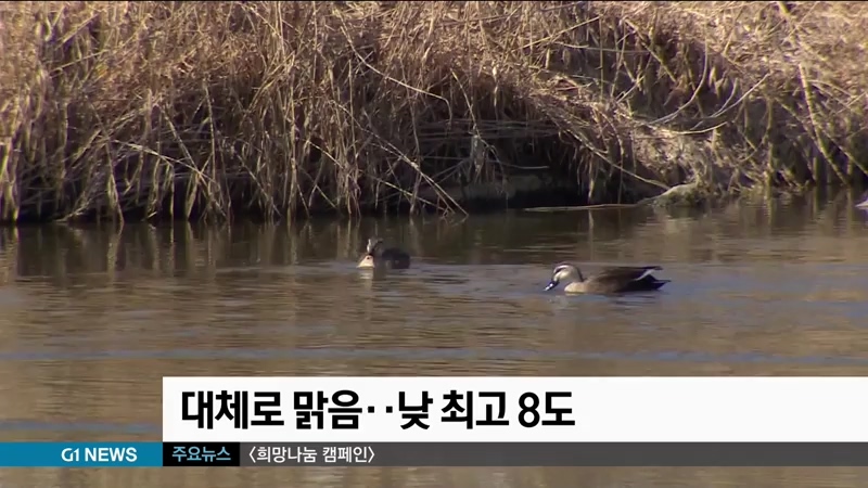낮 최고기온은 2도~8도로 어제보다 조금 높겠으며, 동해안과 남부산지를 중심으로 대기가 매우 건조하겠습니다.
