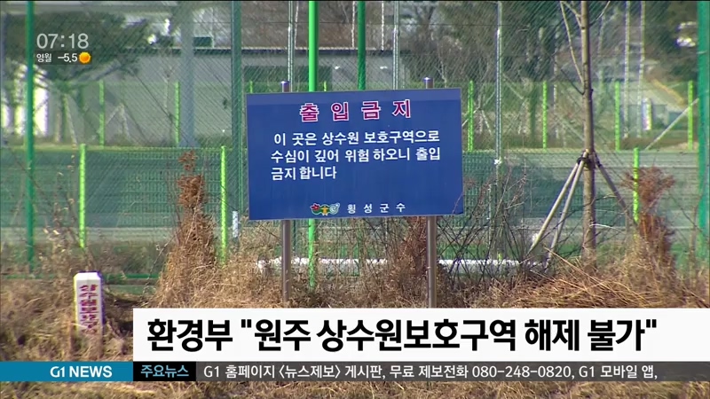 원주 상수원보호구역 해제와 관련해, 환경부가 횡성댐의 물 공급 능력이 부족하다면서 사실상 해제 불가 입장을 제시했습니다.