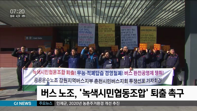 민주노총 공공운수노조 춘천시민버스 지회가 춘천지역 시내버스 운영을 맡고 있는 녹색시민협동조합의 퇴출을 촉구하고 나섰습니다.