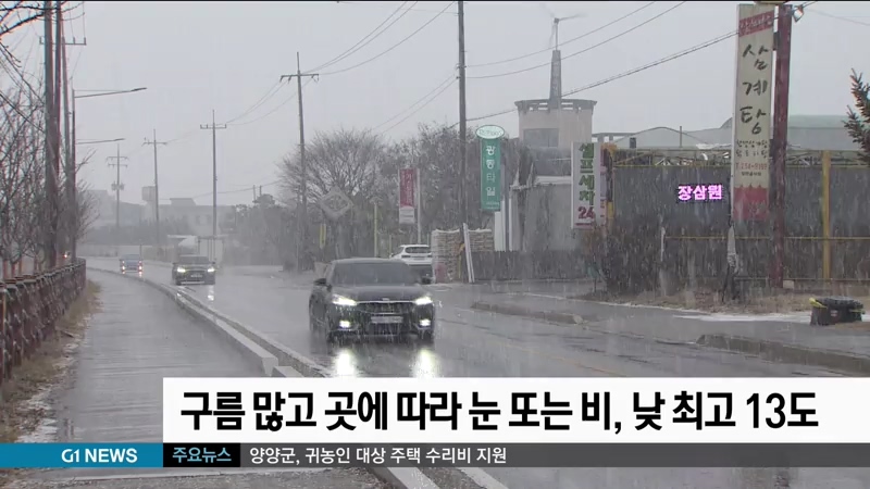 구름 많고 곳에따라 눈 또는 비, 낮 최고 13도