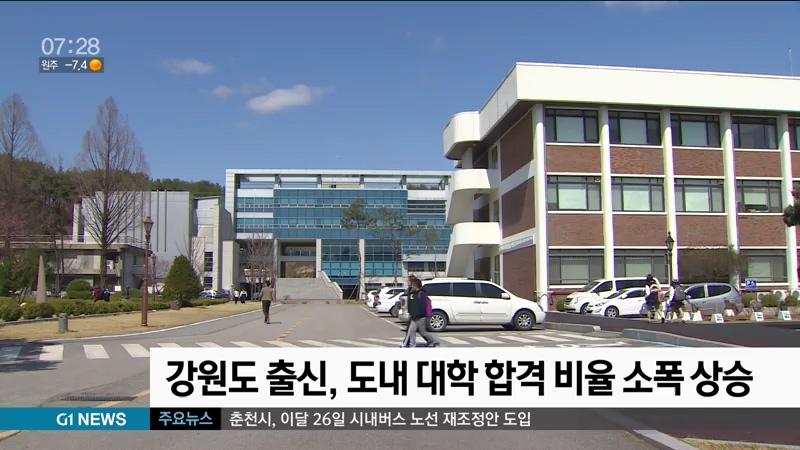 강원도 출신 수험생들의 도내 대학 합격 비율이 지난해 보다 소폭 상승한 것으로 나타났습니다.