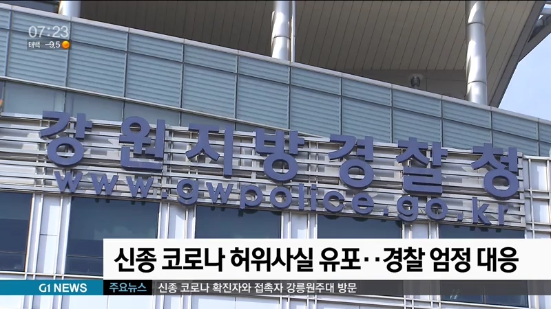 강원지방경찰청은 "신종 코로나 바이러스 의심자 2명이 속초의 한 병원에 입원해 있으니 해당 병원에 가지 말라"는 내용의 허위 사실을 유포한 50대 여성 A씨를 업무방해 혐의로 불구속 입건했다고 밝혔습니다.