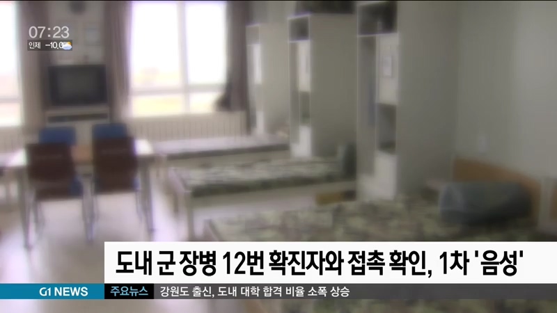 도내 군 장병 12번 확진자와 접촉 확인..1차 '음성'