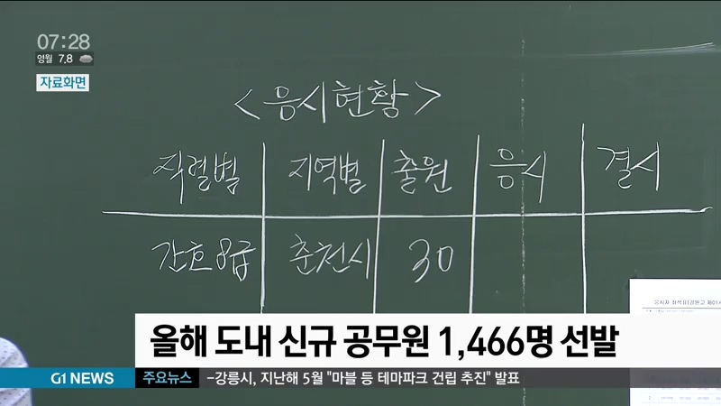 지역별로는 강원도청 163명을 비롯해 원주시 174명, 춘천시 122명, 강릉시 101명 등 18개 시·군에서 모두 1,466명을 선발할 계획입니다.
