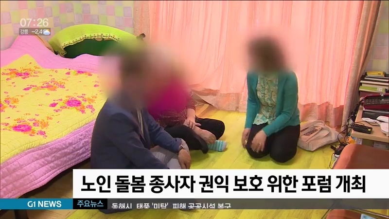 강원도의회 젠더연구회와 강원도여성가족연구원은 오늘(17일) 강원도의회에서 '장기 요양기관 노인 돌봄 종사자 권익 보호 방안'이라는 주제로 포럼을 개최합니다.
