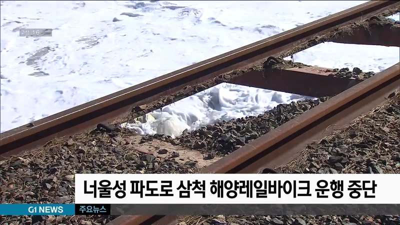 삼척시는 지난 주말 너울성 파도로 인해 해양 레일바이크 철로 아래 지반 50m 가량이 심하게 깎여 운행을 중단시켰다고 밝혔습니다.