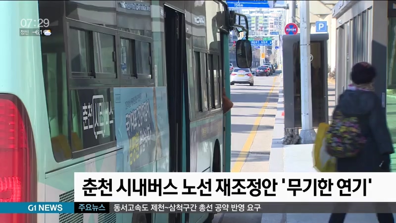 오는 26일부터 도입하기로 했던 춘천 시내버스 노선 재조정이 무기한 연기됐습니다.
