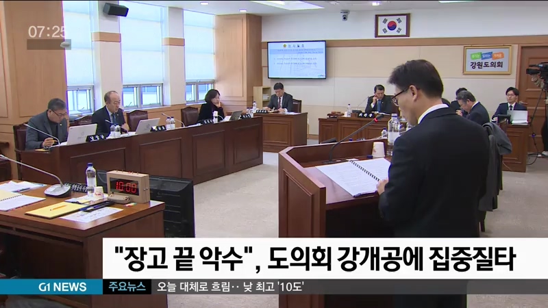 "장고 끝 악수", 도의회 강개공에 집중질타