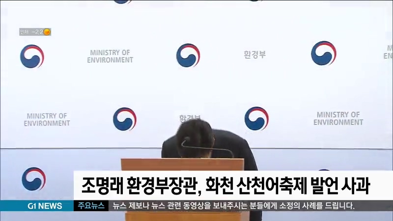 조명래 환경부장관이 최근 기자간담회에서 화천산천어축제에 대한 부정적인 발언을 한 것에 대해 사과했습니다.