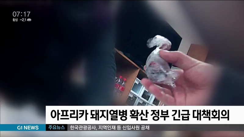 아프리카돼지열병 중앙사고수습본부는 오늘(21일) 오후 4시에 강원도청 ASF 현장 상황실에서 야생멧돼지 관리대책 방안과 축산농가의 방역 조치 이행 여부 등을 점검할 계획입니다.