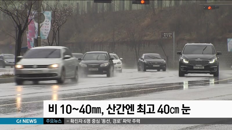 비의 양은 10에서 40mm로 예상되고, 산간지역엔 40cm의 눈이 오는 곳도 있겠습니다.