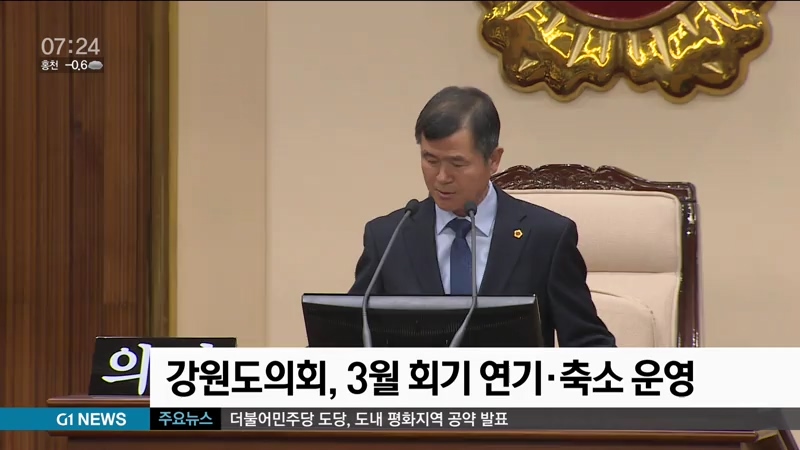 강원도의회, 3월 회기 연기·축소 운영