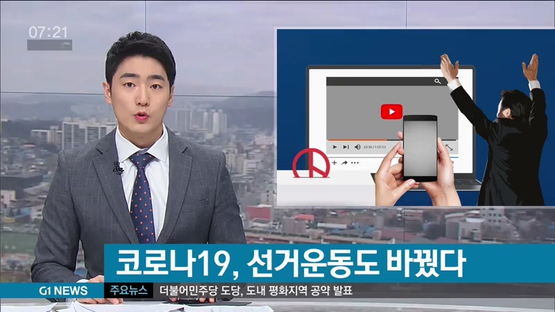 "하지만 코로나19 예방을 위해, 기존 거리에서 유권자들을 만나던 선거운동 방식도 완전히 달라졌습니다.