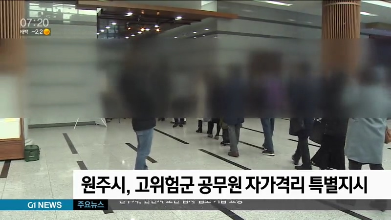 원창묵 원주시장은 코로나19 고위험군 공무원에 대해 검체 검사를 거쳐 음성 판성이 나올때까지 자가 격리하도록 조치했습니다.