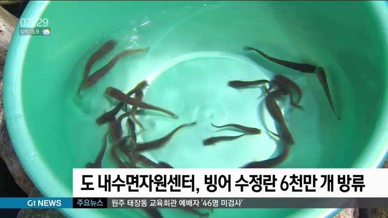 강원도 내수면자원센터가 빙어 수정란 6천만 개를 생산해 오는 5일 춘천과 원주 등 5개 지역의 수면에 방류합니다.