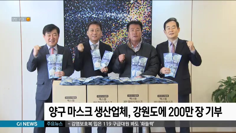 최근 '코로나19' 확산의 여파로 전국적으로 마스크 대란이 일고 있는 가운데, 양구지역 한 마스크 생산업체가 도내 소외계층을 위해 마스크를 기부했습니다.