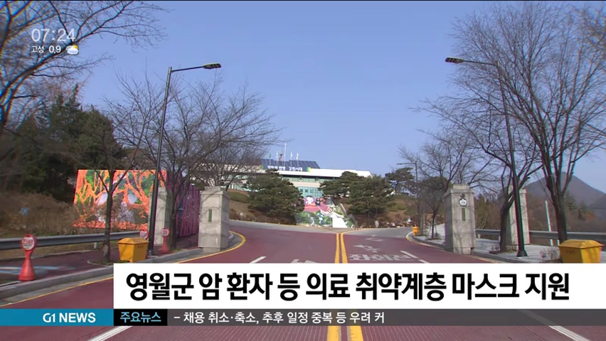 영월군이 공적 마스크 구입에 어려움을 겪는 지역 내 취약계층에게 군 차원에 마스크를 직접 지원합니다.