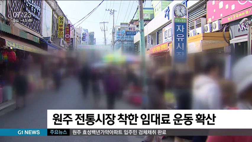 코로나 19로 어려움을 겪고 있는 원주지역 전통시장 상인들을 위해 임대료를 인하하는 '착한 임대료 운동'이 확산되고 있습니다.
