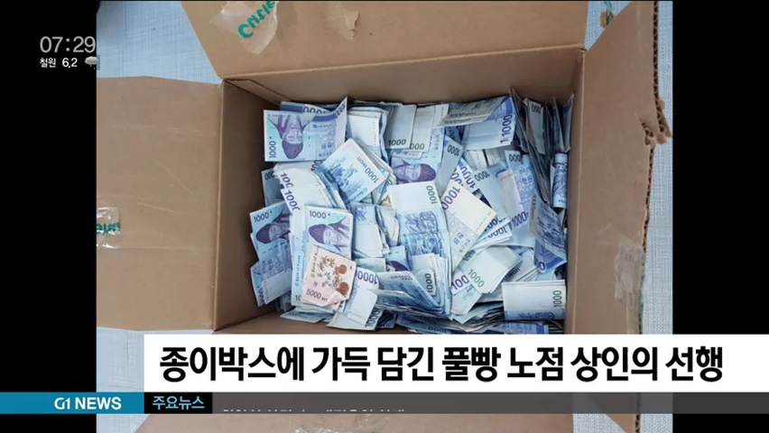 종이박스에 가득 담긴 풀빵 노점 상인의 선행