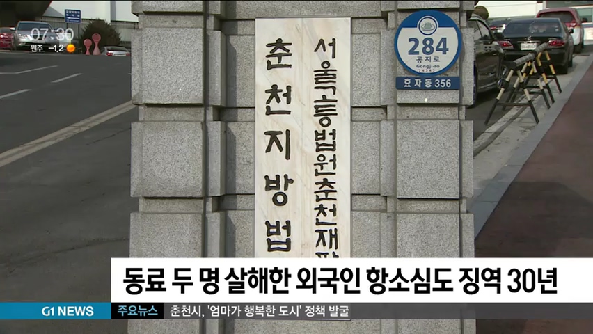동료 두 명 살해한 외국인 항소심도 징역 30년