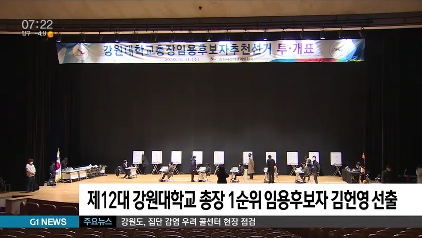 제12대 강원대학교 총장임용후보자추천선거에서 김헌영 현 총장이 1순위 임용후보자로 선출됐습니다.