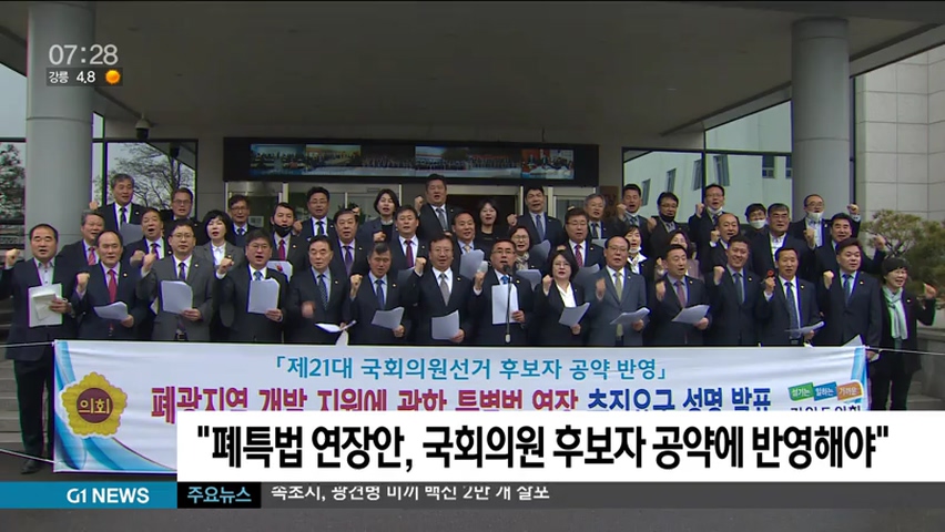 또 폐특법 연장에 대해 담당 부처가 미온적인 태도를 보이고 있다며, 이번 총선에 출마하는 도내 후보자들의 공약에 담아 추진해야 한다고 촉구했습니다.