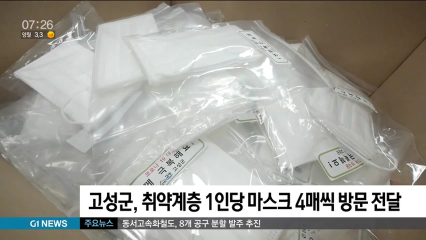 고성군, 취약계층 1인당 마스크 4매씩 방문 전달