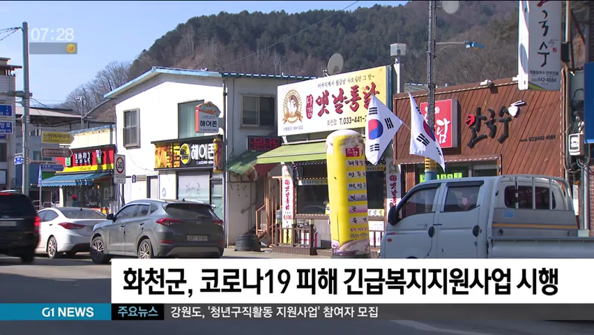 코로나19로 군 장병의 외출·외박이 전면 금지돼 상권 경기 침체를 맞고 있는 화천군이 긴급복지지원사업을 벌입니다.