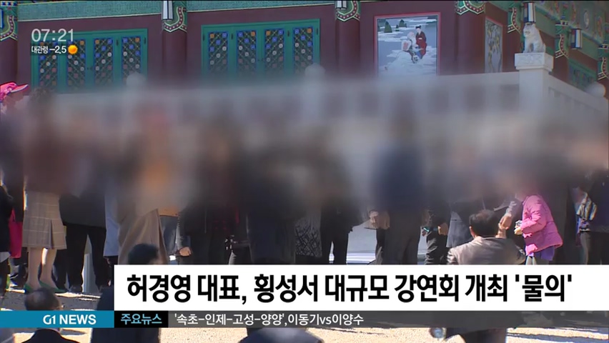 코로나19 장기화에 따라 집회를 자제하라는 정부 권고에도 불구하고, 허경영 국가혁명배당금당 대표가 어제(22일) 횡성에서 대규모 강연회를 강행해 물의를 빚고 있습니다.