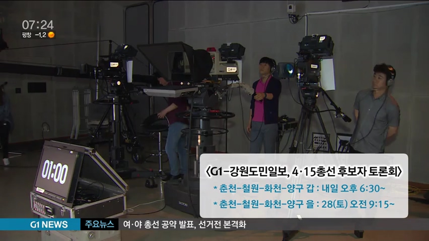 G1강원민방과 강원도민일보가 공동 주최하는 이번 토론회는 '춘천-철원-화천-양구 갑' 선거구는 25일, 이번주 수요일 저녁 6시 30분 부터 90분간,