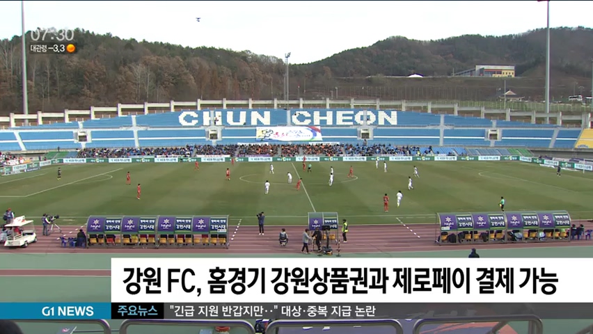 강원FC가 홈경기 입장료를 홈경기장 매표소와 기념품 판매소에서 강원상품권과 제로페이로 결제할 수 있도록 했습니다.
