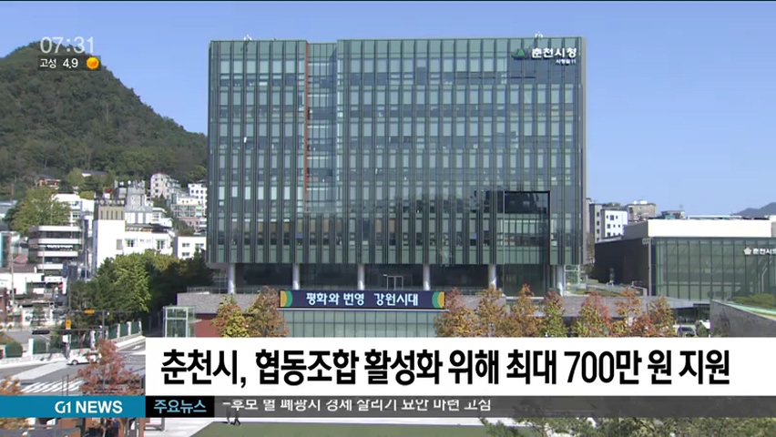 춘천시, 협동조합 활성화 위해 최대 700만원 지원
