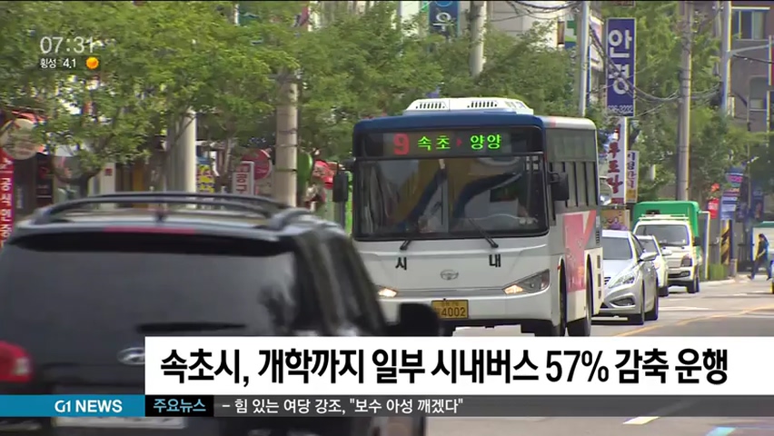 속초시가 잇따른 개학 연기로 시내버스 이용객이 급감함에 따라 내일(26일)부터 다음달 5일까지 시내버스 운행을 감축하기로 했습니다.
