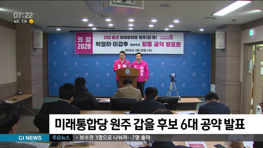 미래통합당 박정하 원주갑 예비후보와 이강후 원주을 예비후보는 어제(25일) 원주시청 브리핑룸에서 공동 기자회견을 열고 원주권 6대 공약을 발표했습니다.
