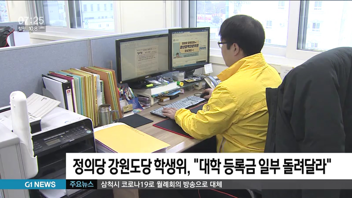정의당 강원도당 학생위원회는 성명서를 내고, 코로나19 사태로 온라인 비대면 강의를 하고 있는 대학들이 입학금과 등록금 일부를 반환해야 한다고 밝혔습니다.