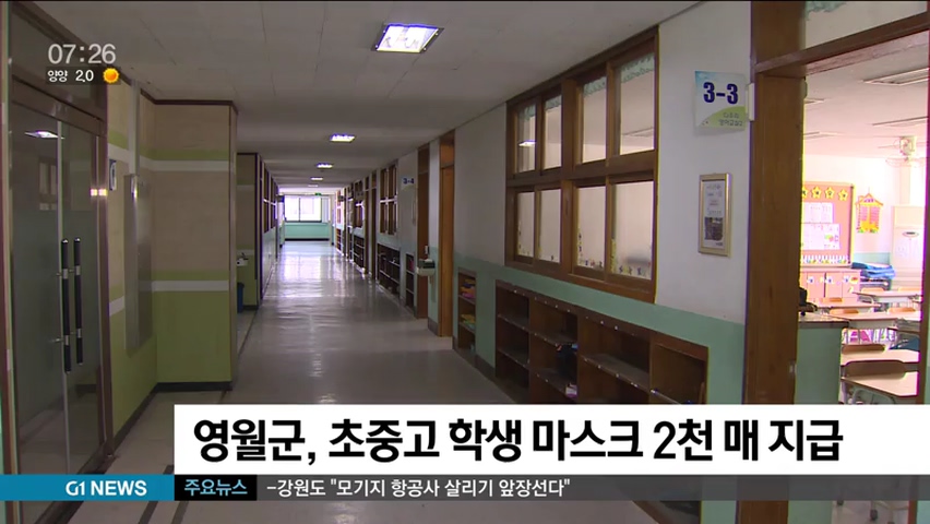 영월군이 집단감염 예방 차원에서 개학을 앞둔 학생들에게 마스크를 지급하기로 했습니다.