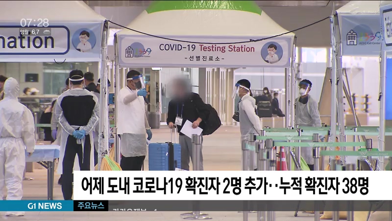 도내 코로나19 확진자가 어제 하루 2명이 추가되면서 누적 확진자는 모두 38명으로 늘었습니다.