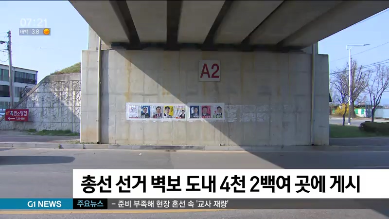 오늘(3일)까지 도내 4천2백여 곳에 제21대 국회의원 선거 후보자 선거 벽보가 붙습니다.