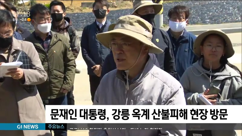 문 대통령은 어제, 강릉시 옥계면 재조림 현장을 찾아, 산불로 피해를 입은 지역 주민들을 위로하고, 산불 진화에 참여한 소방관과 지역 공무원 등 유공자들에게 감사의 뜻을 전했습니다.