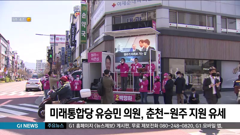 미래통합당 유승민 의원이 어제 춘천과 원주를 잇따라 방문해 통합당 후보에 대한 지지를 호소했습니다.