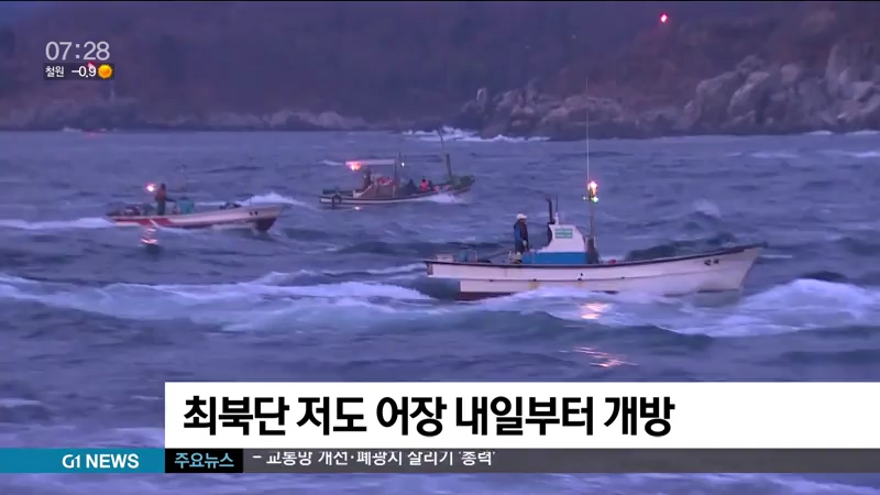최북단 저도 어장은 12월 31일까지 약 9개월간 개방되며 주요 수산물로는 문어와 해삼, 홍합, 해조류, 게류 등이 어획됩니다.