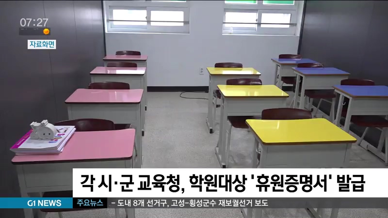 도내 17개 시·군 교육청에서는 휴원 중인 학원을 대상으로 '휴원증명서'를 발급하고 있습니다.