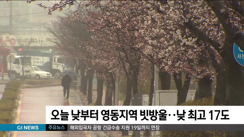 오늘 낮부터 영동지역 빗방울.. 낮 최고 17도