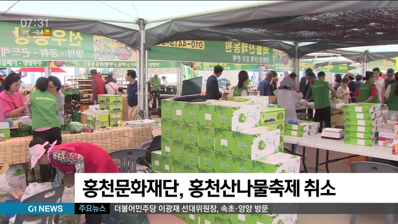 홍천문화재단은 축제 취소로 인한 농가 피해를 최소화하기 위해 온라인 판매지원 등의 대책을 마련하기로 했습니다.