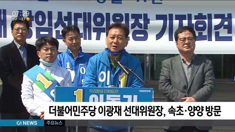 더불어민주당 이광재 공동상임선대위원장이 속초와 양양을 찾아 여당 후보에 대한 지지를 호소하고, 설악산 오색케이블카 유치를 약속했습니다.