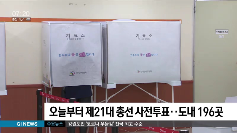 오늘부터 제21대 총선 사전투표..도내 196곳