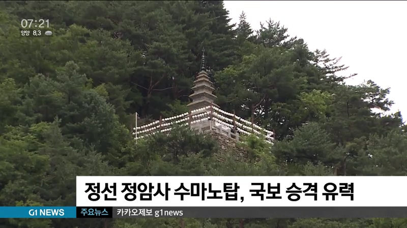 문화재청은 정선 정암사 수마노탑을 국보로 지정 예고하고, 한 달간 각계 의견을 수렴한 뒤, 문화재 위원회 심의를 거쳐 문화재 승격 여부를 확정하기로 했습니다.