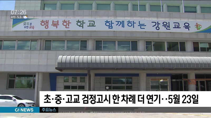 강원도교육청은 코로나19 사태 속 '사회적 거리두기'가 연장됨에 따라, 애초 4월 11일에서 5월 9일로 연기했던 시험을 한 차례 더 연기했습니다.
