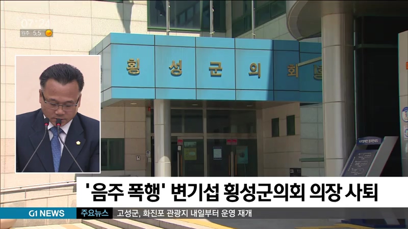 음주 폭행으로 물의를 빚은 변기섭 횡성군의회 의장이 의장직을 사퇴했습니다.