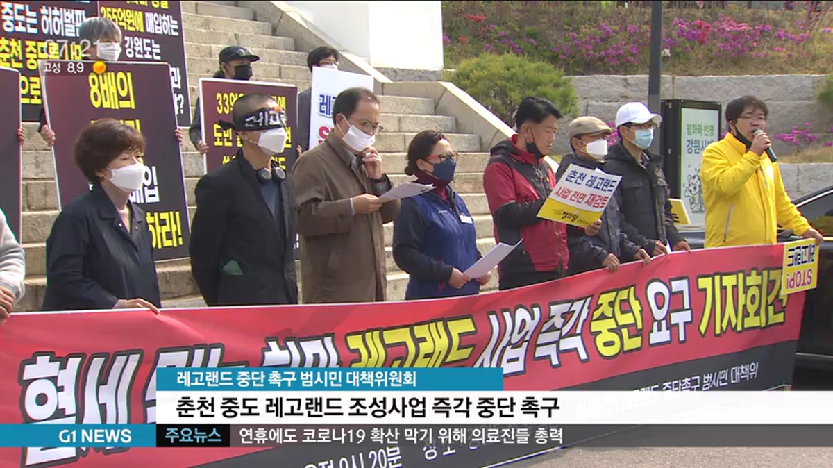 21개 강원도 시민사회단체들로 구성된 레고랜드 중단 촉구 범시민 대책위원회는 어제(29일) 강원도청 앞에서 기자회견을 열고, 춘천 중도 레고랜드 조성사업 중단을 강력 촉구했습니다.